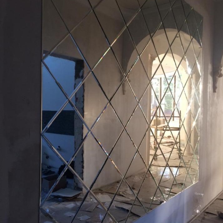 Использована зеркальная квадратная плитка с фацетом.